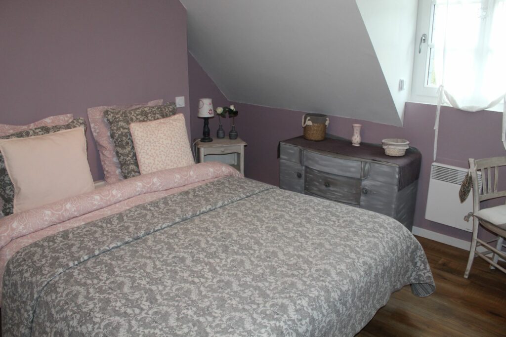 Très jolie chambre dans les tons de rose poudré très cocooning proposant :